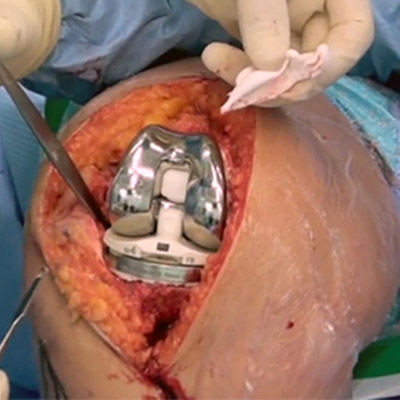 A knee replacement takes one to two hours. It is usually performed under an epidural anaesthetic, which means that you will be awake throughout the procedure and will feel no pain. Once the anaesthetic has taken effect, an incision, usually around 10-30cm (5-7 inches) long will be made down the front of your knee. The length of the incision may be shorter depending on the technique your surgeon is using.Your kneecap will be moved to one side so the joint can be reached. The worn or damaged surfaces will be removed from both the end of your thighbone and the top of your shin bone. The surfaces will then be shaped to fit the knee replacement.The replacement parts will be fitted over both bones.Sometimes the part of your kneecap that is in contact with the new knee joint is replaced with a plastic prosthesis. This is called patellar resurfacing.After the new parts are fitted and tested to make sure they move smoothly, your surgeon will close the wound with stitches or clips and cover it with a dressing.